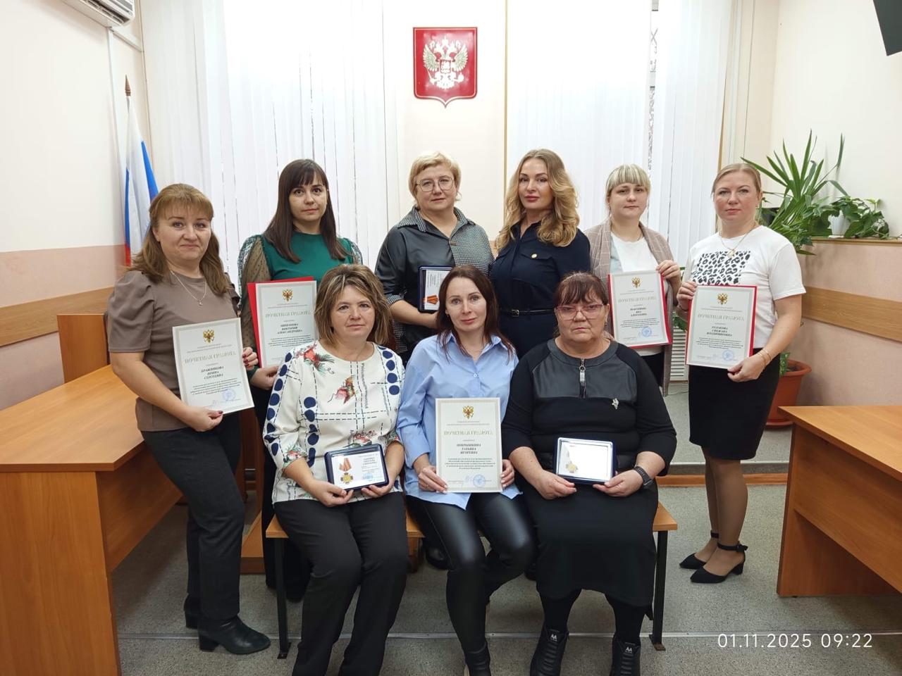старшему специалисту 1 разряда В.В. Лапиной. Также за высокие результаты в деле организационного обеспечения деятельности федеральных судов общей юрисдикции, добросовестное исполнение должностных обязанностей и личный вклад в укрепление органов правосудия Российской Федерации Почетными грамотами Судебного департамента при Верховном Суде Российской Федерации награждены начальник общего отдела И.С. Бражникова и помощники судей В.А. Мишанова, Я.А. Максимова, Т.И. Покрышкина, С.В. Рудакова. Председатель суда И.Г. Тимофеева поблагодарила всех за проделанную работу и пожелала дальнейших успехов. Объединенная пресс-служба судов общей юрисдикции Владимирской области Тел.: 8-49235-2-35-24 ![]() |